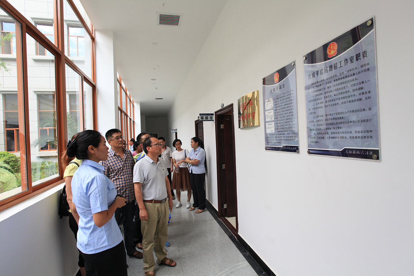 在代成平巡回调解室,代表委员们站在代成平巡回调解室的牌匾和代成平法官简介前,聆听着元阳法院代成平法官当年创下的“双百”业绩,感受着代成平法官“马背上法庭”精神的星火相传;在家事圆桌调解室,工作人员向代表委员详细介绍圆桌调解的特点和优势;在人民调解委员会派驻法院调解工作室,多元化解矛盾纠纷机制成了代表委员们关注的焦点。期间,恰逢一件婚姻纠纷正在开庭审理,代表委员们轻轻落座旁听席,旁听见证了案件成功调解的全过程。